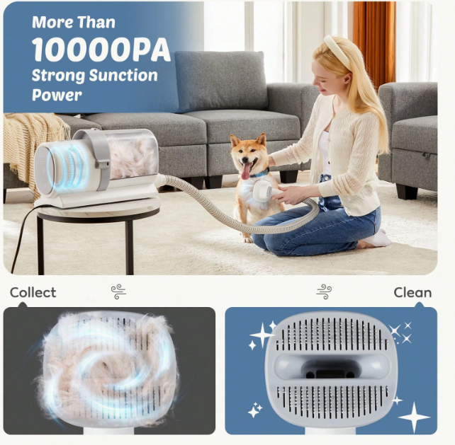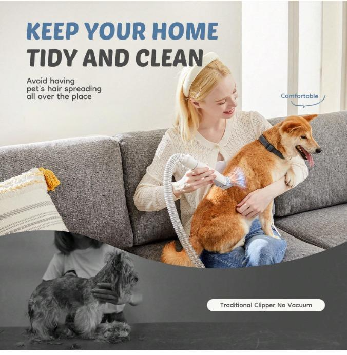 Say goodbye to pet hair mess and tangled fur with the GroomiVac — it captures 99% of loose fur with powerful suction, keeping your space clean and your pet comfortable. Effortless grooming and mess-free cleanup make it easy to keep your pet looking great.