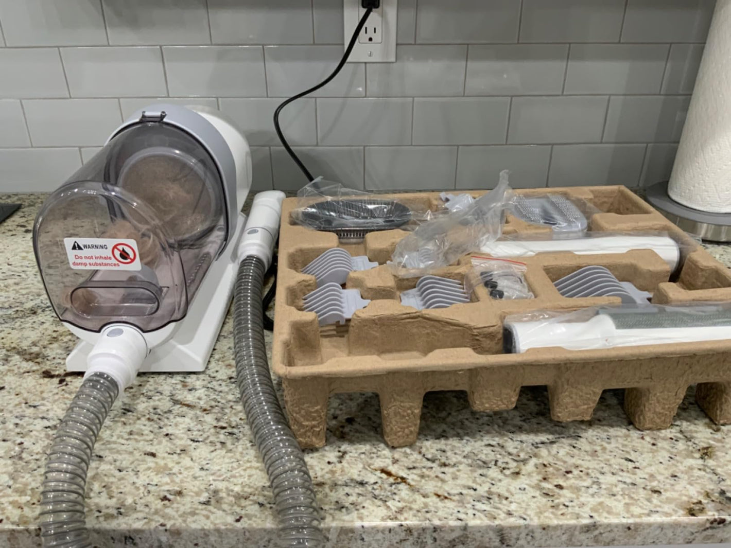 The kit offers excellent reach and flexibility for hassle-free grooming. The total length of the power cord is approximately 8.2 feet, with 7.5 feet of that being exposed from the main unit—giving you plenty of room to move around while grooming. Additionally, the vacuum hose measures about 4.4 feet in length, providing extended reach so you can comfortably groom your pet without needing to reposition the unit frequently.